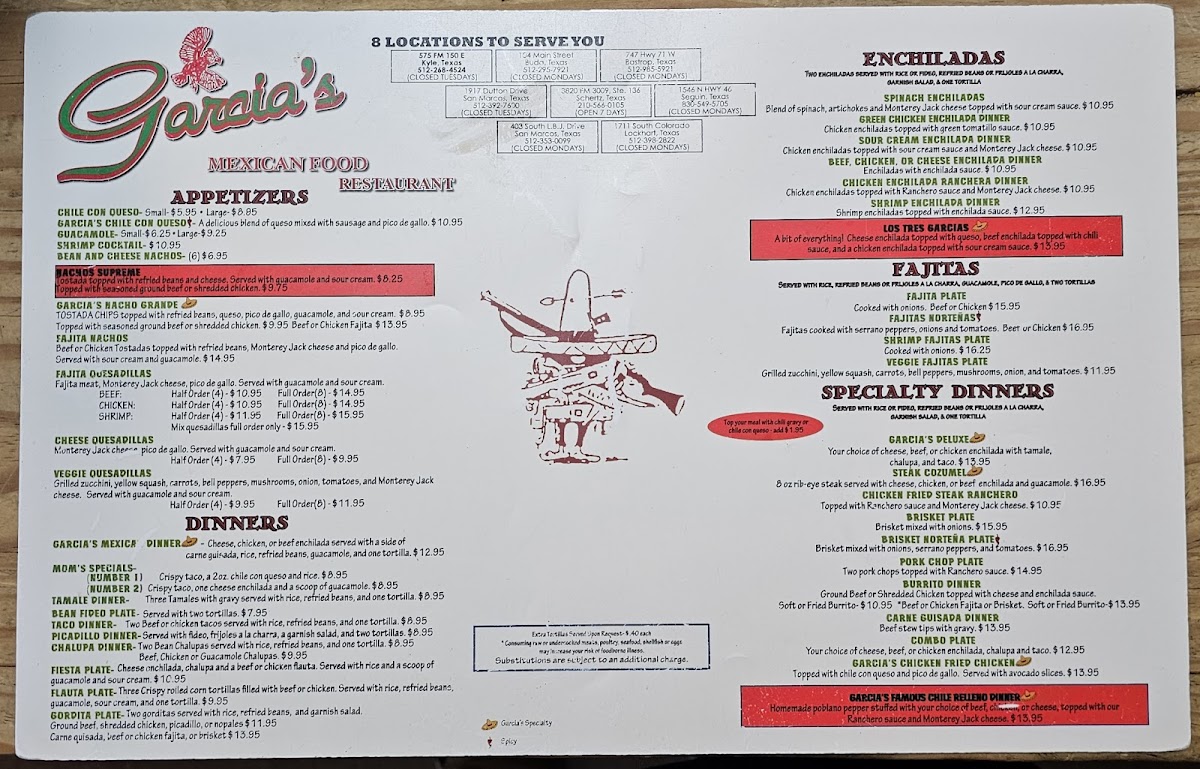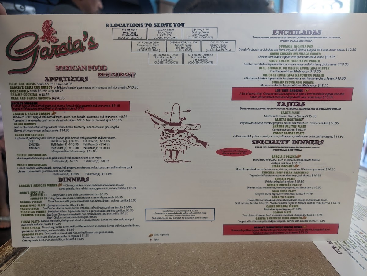 Welcome to Garcia's Mexican Restaurant, where authentic Tex-Mex flavors come alive in a vibrant setting. Located in Kyle, TX, this culinary gem offers a menu brimming with hearty dishes that cater to every craving.